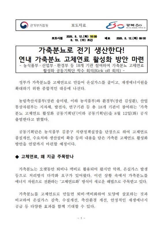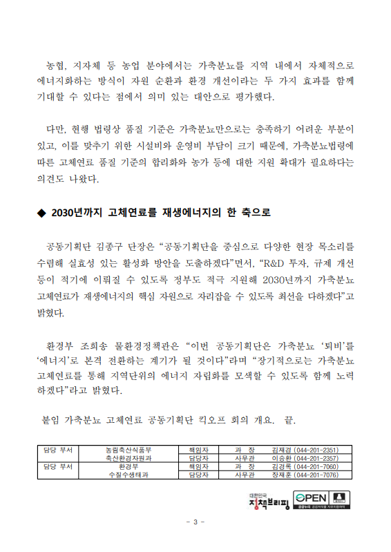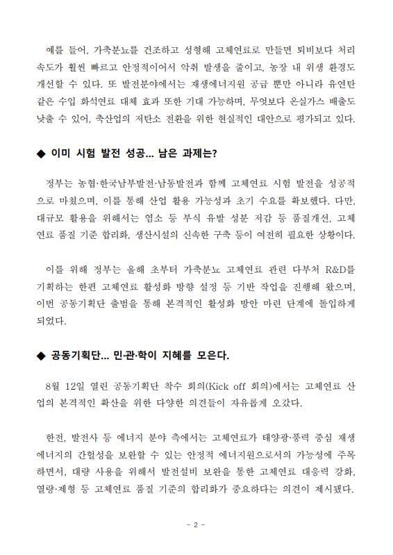 [농식품부 08.13] 가축분뇨로 전기 생산한다! 연내 가축분뇨 고체연료 활성화 방안 마련