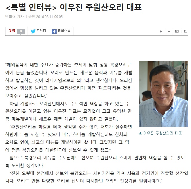 [농수축산신문] 이우진 대표, 다시한번 오리의 전성기를...