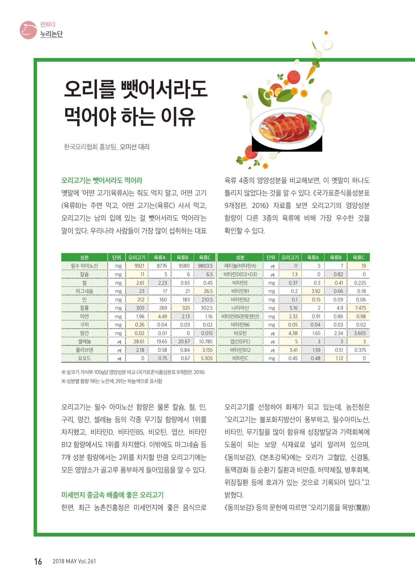 [축산물품질평가원 KAPE누리 5월호 vol.261] 오리를 뺏어서라도 먹어야 하는 이유