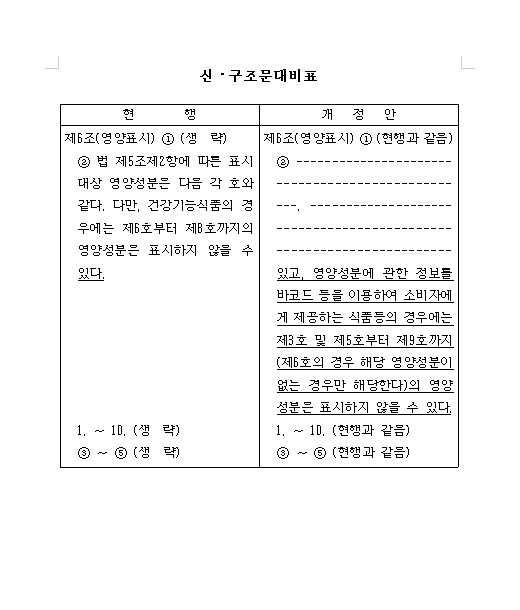 ▲ 「식품 등의 표시·광고에 관한 법률 시행규칙」 (총리령 제2049호) 일부개정 알림