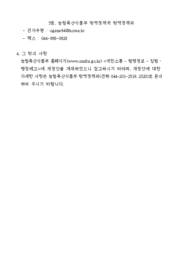 ▼ 「가축전염병 예방법 시행령」일부개정령안 입법예고(~26.2.23. 의견조회)