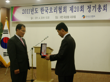 한국오리협회는 지난 4월 20일(수) 오후 2시, 대전 유성호텔에서 2011년도 제20차 정기총회를 개최하였다. 총회는 고문 및 임원, 각 지회에서 추천한 대의원이 참석한 가운데 진행됐다. 먼저, 1부에서는 이창호 협회장의 개회사와 함께 농협중앙회장표창과 우수회원에 대한 회장표창패, 그리고 감사패 수여가 있었다.