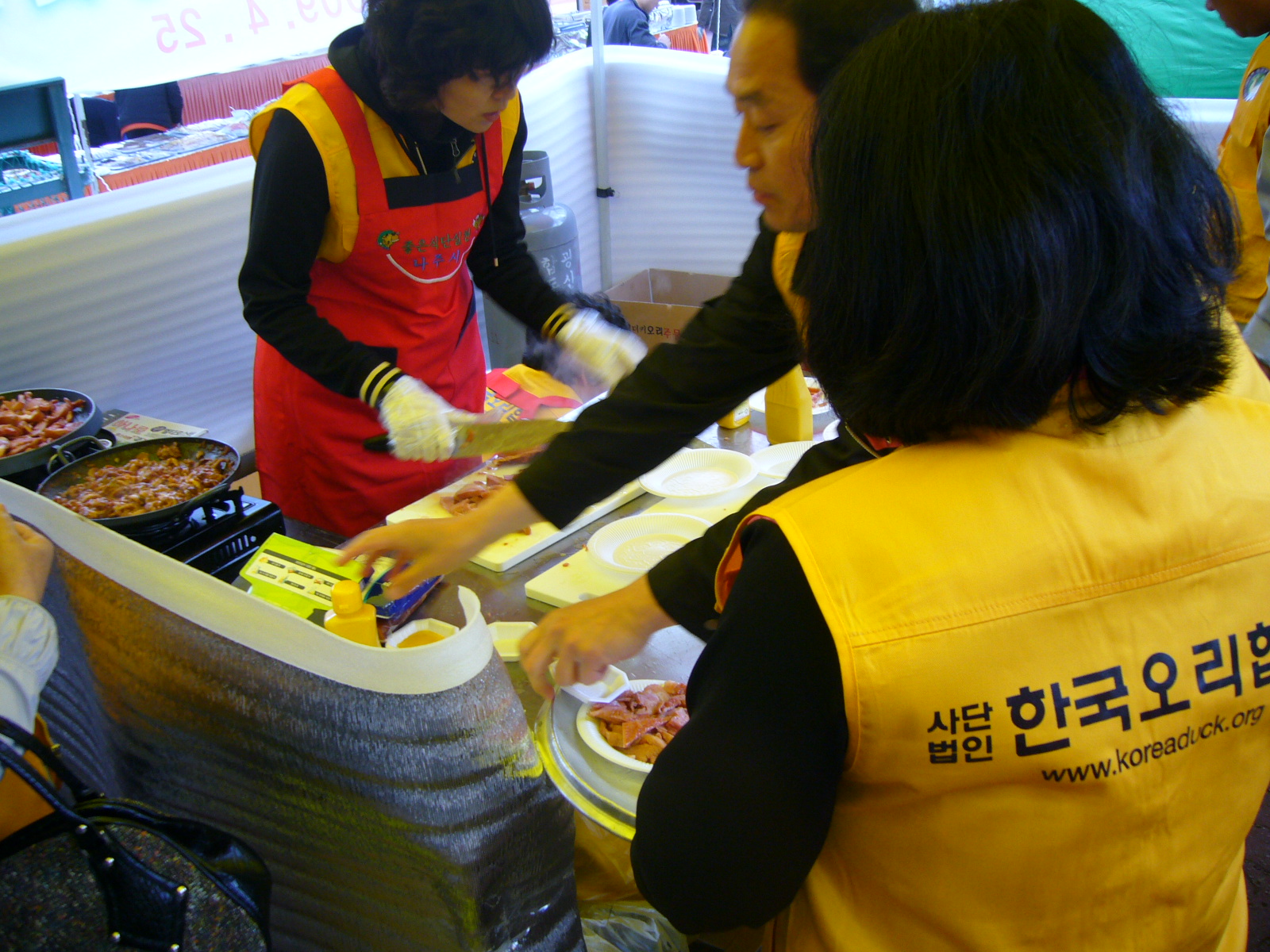지난 4월 25일 광주 전남 조선대학교에서 기자협회 체육대회 때 오리고기 시식 및 판촉 행사가 있었습니다. 추운 날씨에도 불구하고 많은 분들이 참석하여 무사히 행사를 마무리 할 수 있었습니다.