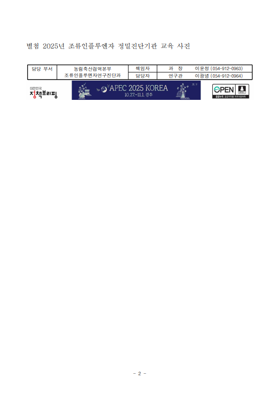[검역본부 09.25] 겨울철 고병원성 조류인플루엔자 유입 대비 전국 진단기관 역량 검증 완료