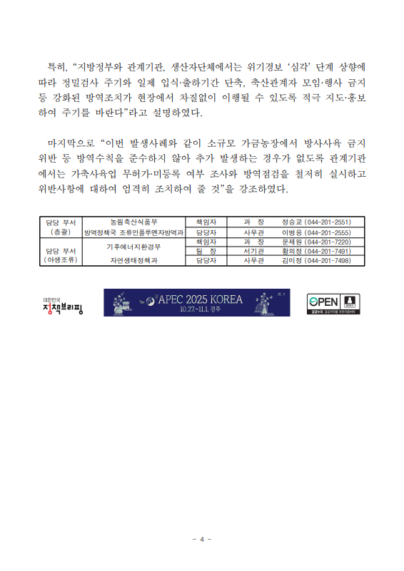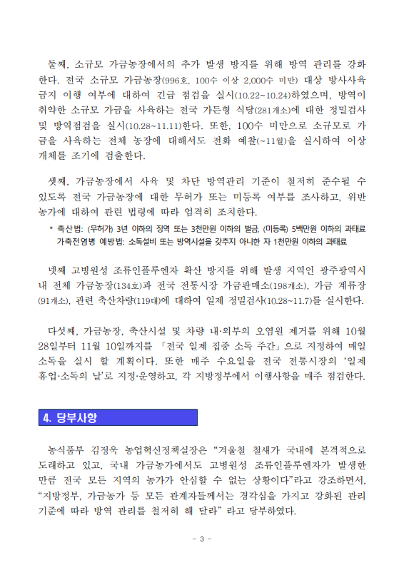 [농식품부 10.27] 광주광역시 소규모 기러기 농장 고병원성 조류인플루엔자 발생에 따라 방역관리 강화