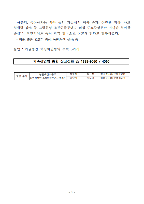 ▼ [농식품부 11.10] 경기 화성 육용종계 농장 고병원성 조류인플루엔자 발생에 따라 방역관리 강화
