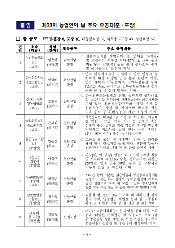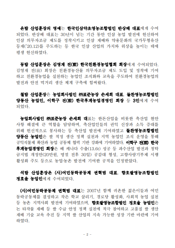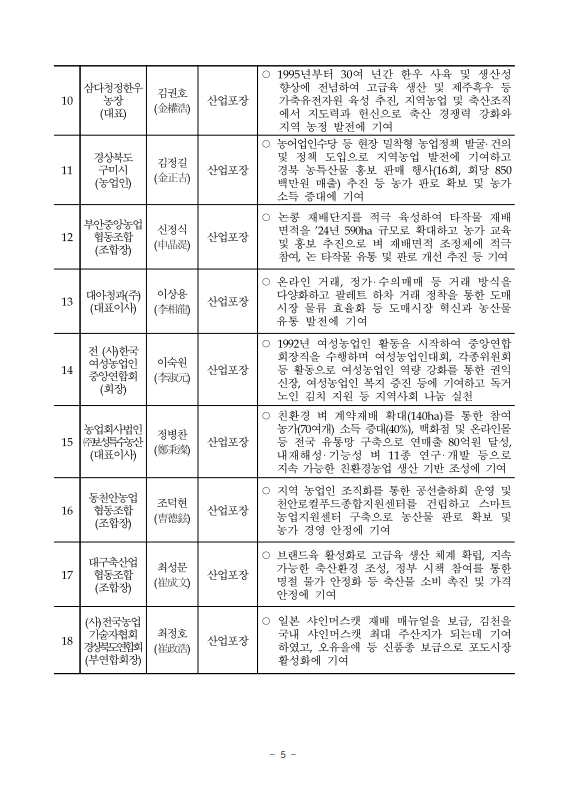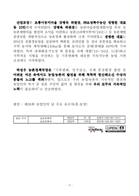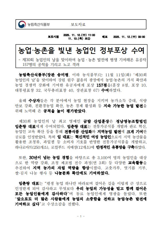 [농식품부 11.13] 농업·농촌을 빛낸 농업인 정부포상 수여