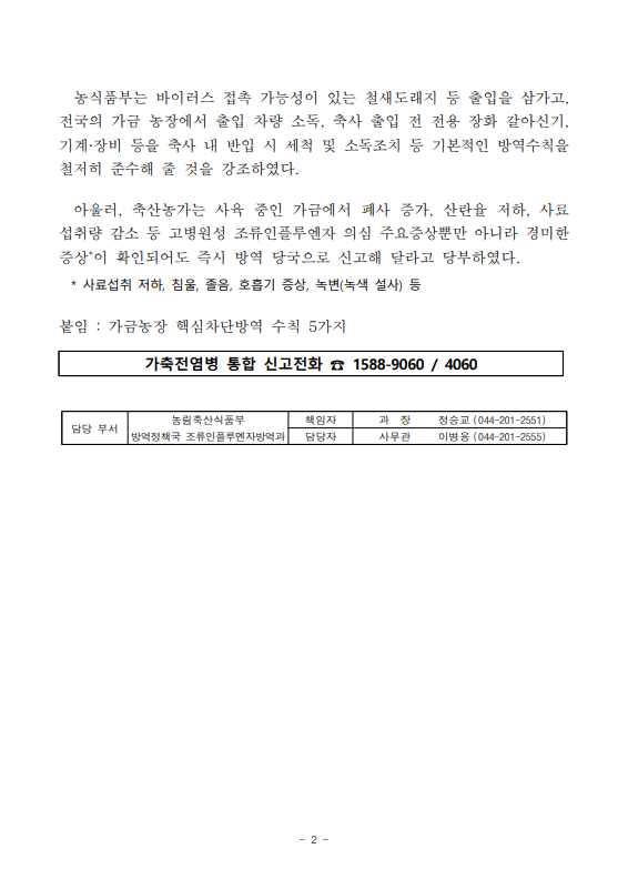 ▼ [농식품부 11.14] 경기 평택 산란계 농장 고병원성 조류인플루엔자 발생에 따라 방역관리 강화