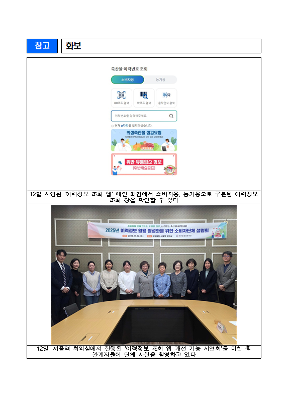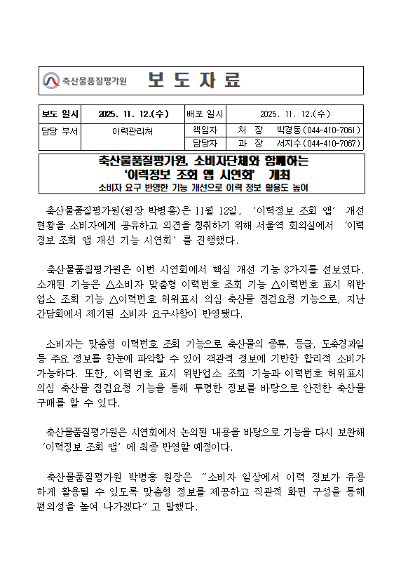 [축평원 11.12] 소비자단체와 함께하는 '이력정보 조회 앱 시연회' 개최