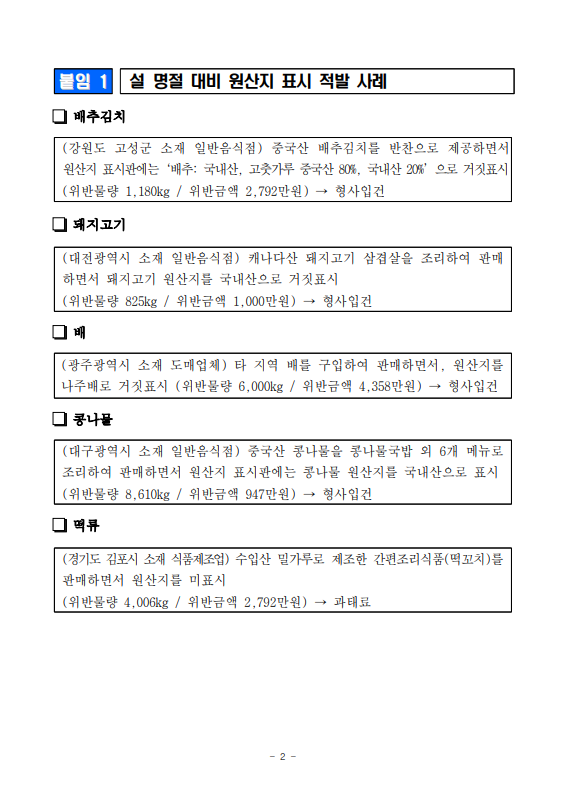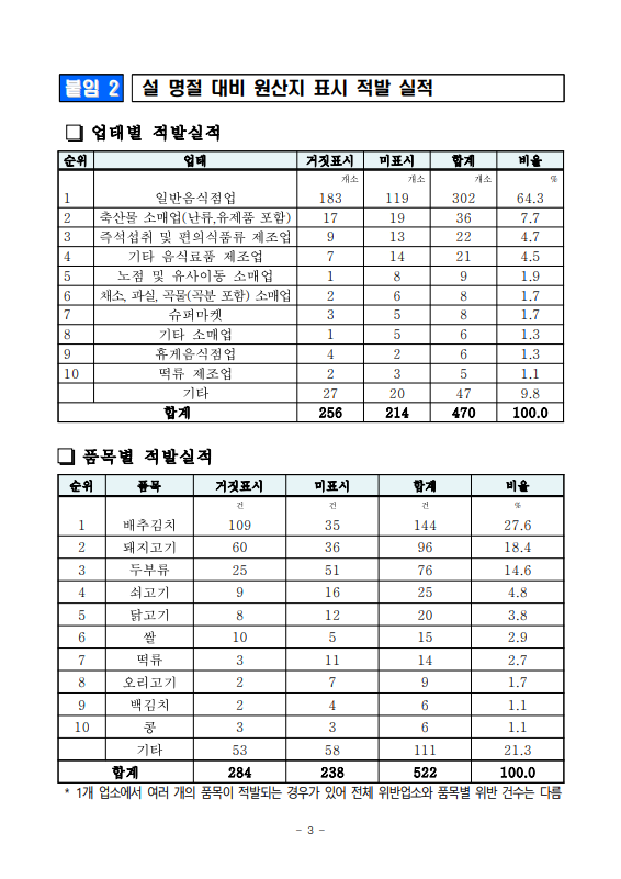 [농식품부 02.24] 설 명절, 농식품 원산지 표시 위반 470개소 적발