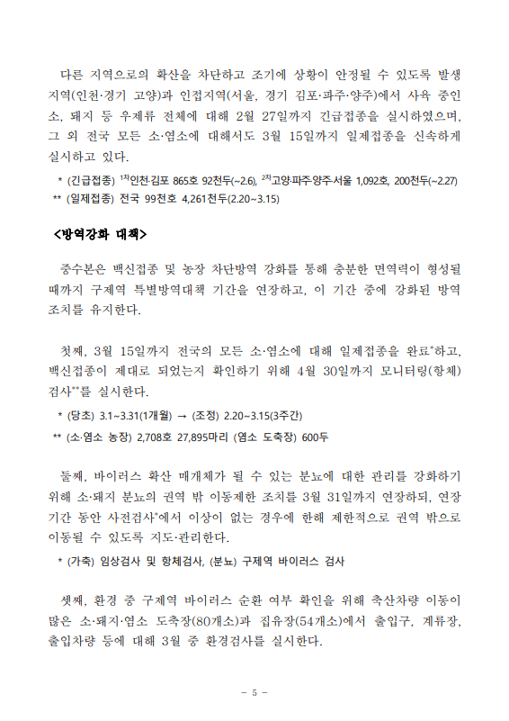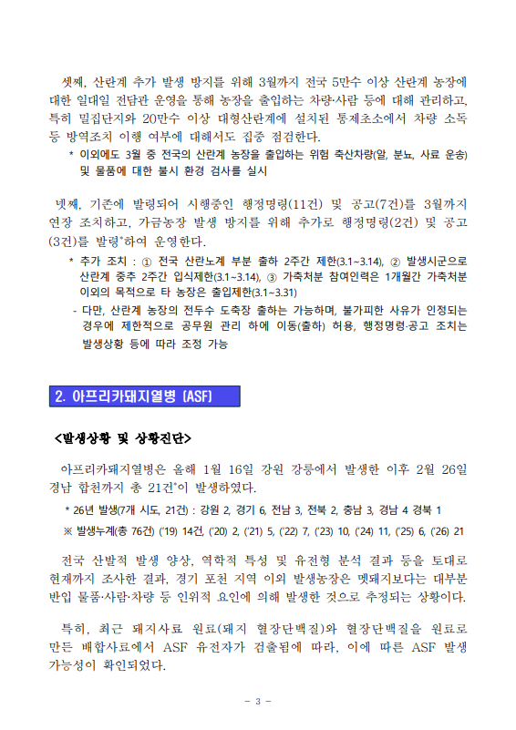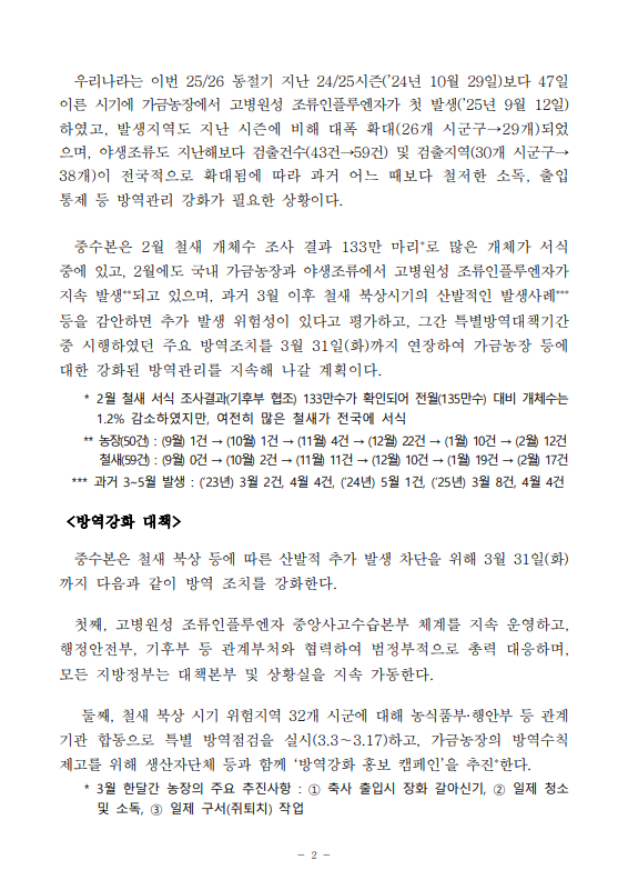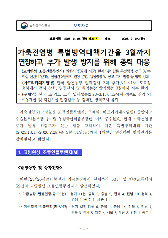 [농식품부 02.27] 가축전염병 특별방역대책기간을 3월까지 연장하고, 추가 발생 방지를 위해 총력 대응