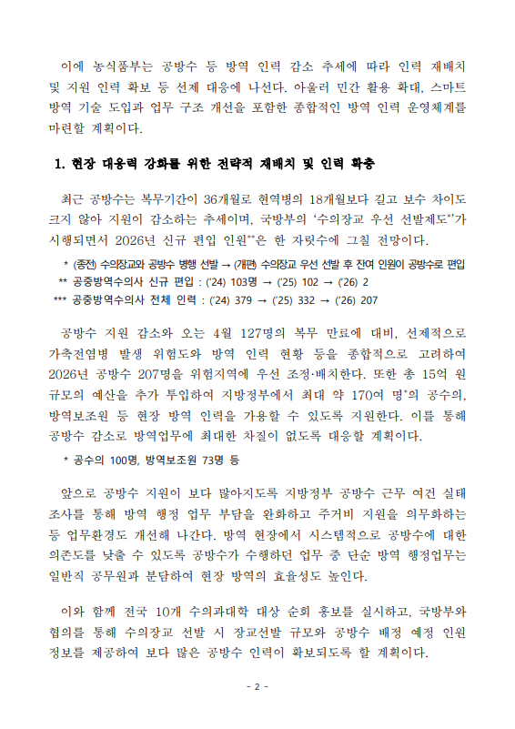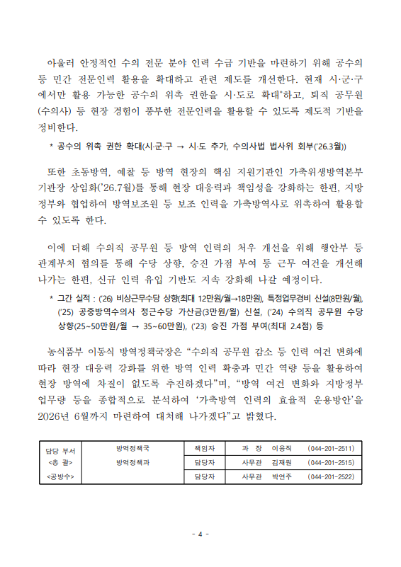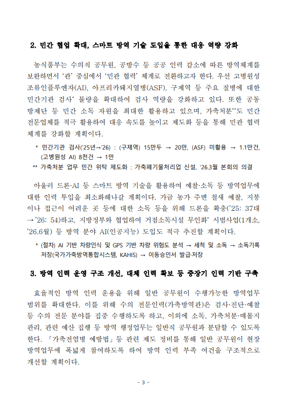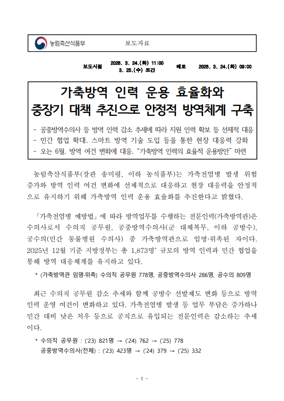 [농식품부 03.24] 가축방역 인력 운용 효율화와 중장기 대책 추진으로 안정적 방역체계 구축