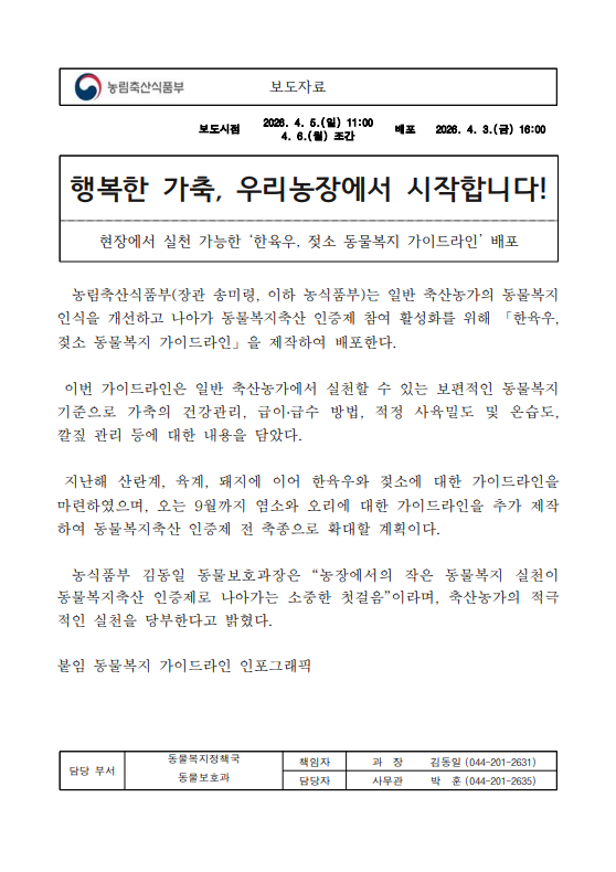 [농식품부 04.06] 행복한 가축, 우리농장에서 시작합니다