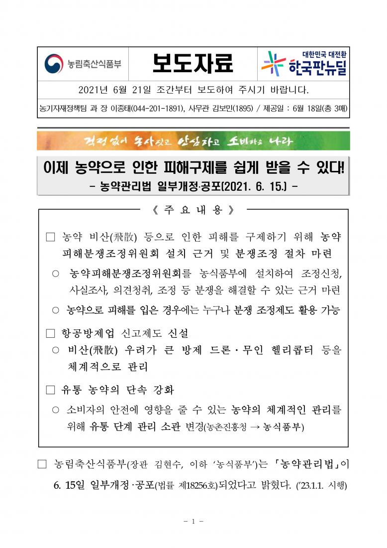 [농식품부 6.21] 이제 농약으로 인한 피해구제를 쉽게 받을 수 있다!