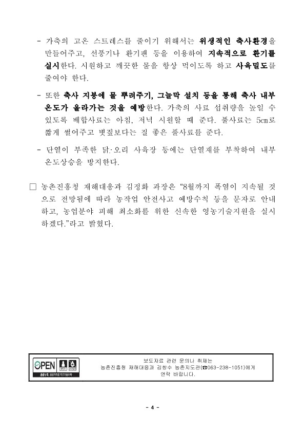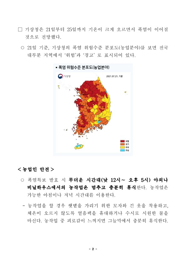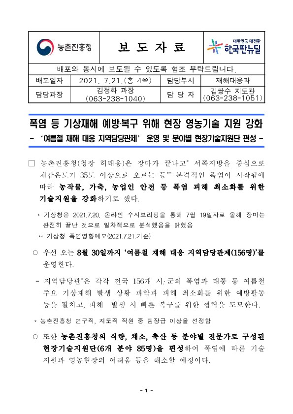 [농촌진흥청 7.21] 폭염 등 기상재해 예방복구 위해 현장 영농기술 지원 강화