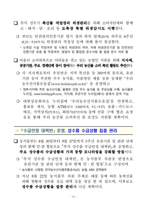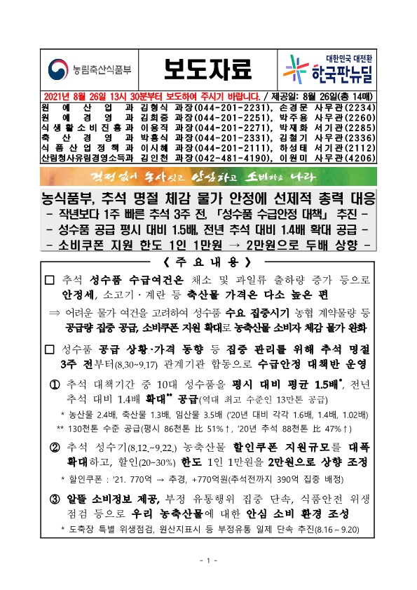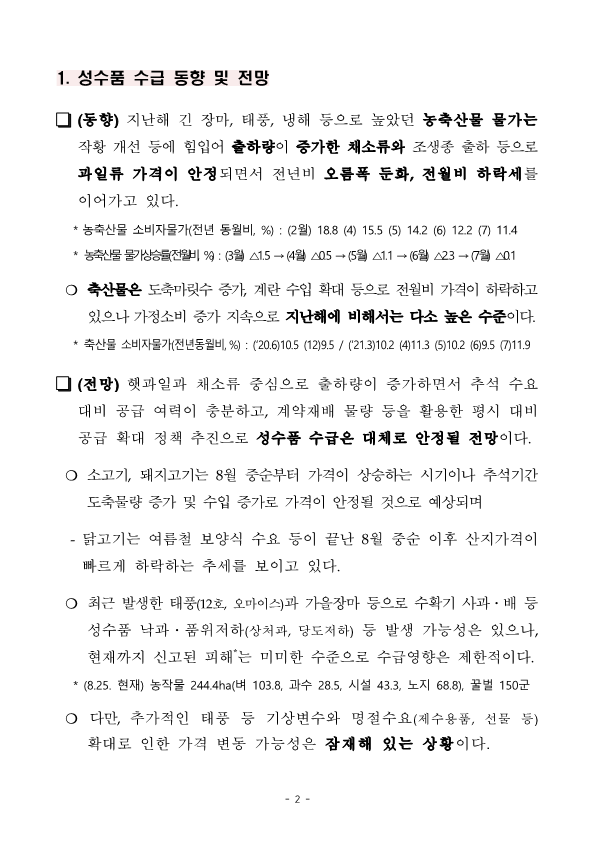 [농식품부 8.26] 농식품부, 추석 명절 체감 물가 안정에 선제적 총력 대응
