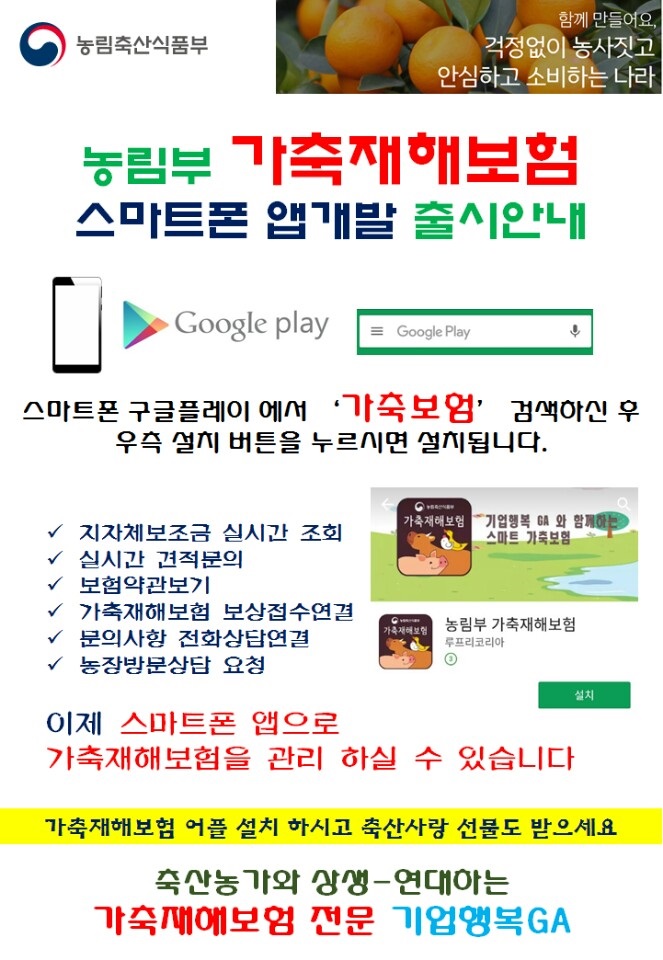 농림부 가축재해보험 스마트폰 앱이 출시되었습니다.