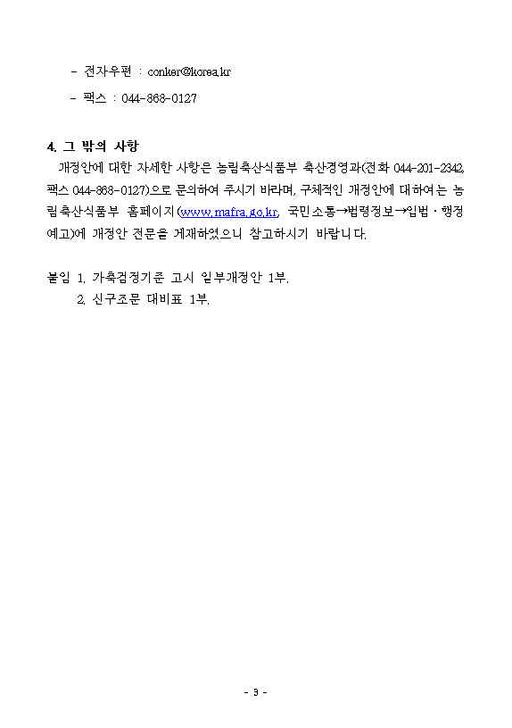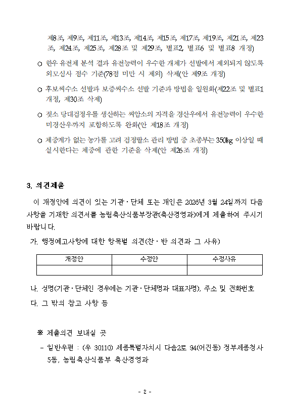 「가축검정기준」 고시 일부개정안 행정예고(~26.3.24. 의견조회)
